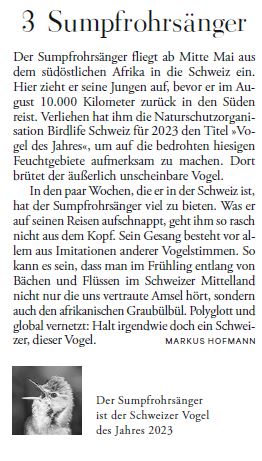 Sumpfrohrsänger. So viel Neues bringt das Jahr! In: Die Zeit vom 29. Dezember 2022.